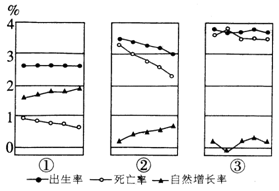 1.关于图甲所示城市人口自然增长率特点的叙述,正确的是2.图中所示城市人口自然增长率状况最接近图乙的3.该城市在今后工作中应