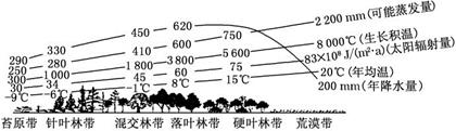 1、单选题 读“部分陆地自然带分布和气候条件关系示意图”,完成下列问题。