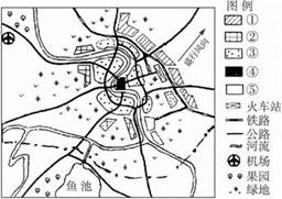 5、单选题 下图为“某城市功能分区示意图”,图例中序号代表不同类型的功能区。读图完成下题。
