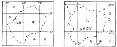 4、单选题  读下列两袖珍国图(甲国为莱索托、乙国为安道尔),回答下列各题。
