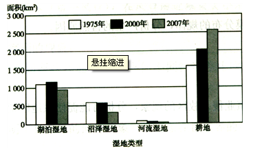 参考答案:(1)1975年以来,湿地面积呈缩小趋势。(1分)