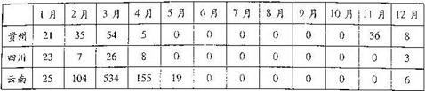 2007年气象卫星监测的我国西南三省林区火灾次数统计表。(单位:次)