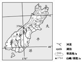 【小题1】山脉呈东北-西南走向,根据河流长度判断,西陡东缓,A错。位于板块消亡边界,多火山地热,B对。常年受西北风控制,降水西多东少,C错。位于温带海洋性气候区,东部河流较西部流速慢,无结冰期,或结冰期较短,D错。