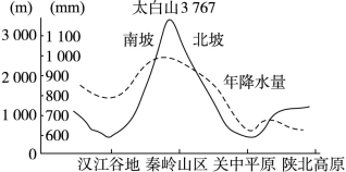 2、综合题 (9分)秦岭是我国重要的地理分界线,秦岭主峰太白山海拔3767米,从南麓的厚畛子镇(海拔约650米)开始攀登山峰,是徒步登山、进行生态考察或旅游的主要路线。下面是某校高一年级研究性学习小组的同学在一次考察中遇到的问题,请你帮助分析完成下列问题。