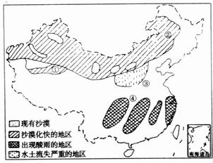 1、综合题 读我国一些地区出现的生态环境问题图,完成下列要求: