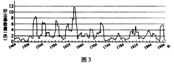 (5)在图3显示的450年间,沙尘暴发生次数的变化呈现出_________________________的规律。在明王
