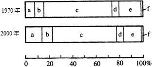 5、单选题  读右图,a、b、c分别表示0~14岁、15~64岁、65岁及以上三种年龄段人数占总人口的比重。据此回答问题。