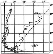 2.根据图示的虚线经过了C岛屿火地岛与南美大陆之间的麦哲伦海峡。