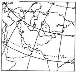 本题解析:(1)根据地理位置可知A位于印度半岛,冬季风来自西伯利亚,影响主要是地形因素。(2)B位于幼发拉底河和底格里斯河流域,形成的古文明是古巴比伦文明。早期城市的发展条件从地形、水源、土壤等方面分析。(3)C位于中亚地区,主要种植棉花。其区位条件从温带大陆性气候分析优势。(4)世界最长河的尼罗河,在上游建设阿斯旺大坝造成的影响。