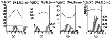 5、单选题 下图表示世界四个地点的气温降水状况,其气候类型判断正确的是