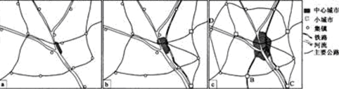 (1)从图a到c,该区域中心城市变化的过程称为________。