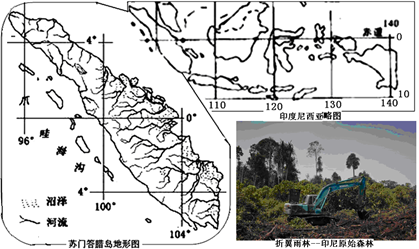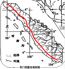 材料三:印度尼西亚略图,苏门答腊岛地形图,