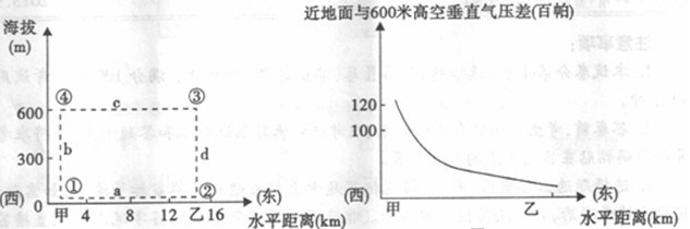 5、单选题 读“世界某区域图”和“风力统计曲线”,“风力统计曲线”中两条折线对应左图中甲、乙两地,读图回答下列问题