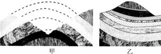 3、单选题 读甲、乙两地地质构造图,完成题。