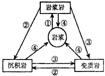 4、单选题 下图是地壳物质循环示意图,组合正确的是