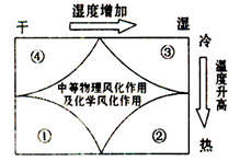 3、单选题 读风化作用强弱与气候相关表示意图,回答下列问题