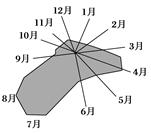 4、单选题 读某河流各月径流状况图(图4),判断9~10题。