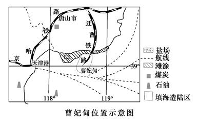 1、单选题 首都钢铁公司从北京市迁至河北曹妃甸,通过填海造陆,建成年产1500万吨的钢铁精品生产企业。读图,回答问题。