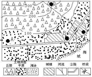 3、综合题  读“我国山东半岛南部某地区土地类型示意图”,回答问题。
