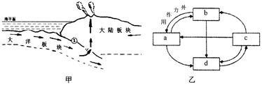5、单选题 图中甲图为“板块运动示意图”,乙图为“岩石圈物质循环示意图”。读图,回答问题。