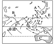 【小题1】根据图示东亚盛行东南季风,南亚盛行西南季风,故判断为北半球夏季,7月。