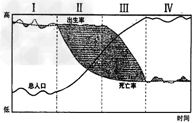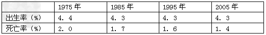 4、单选题 下表是某国出生率、死亡率的变化情况,下图是人口增长模式图。回答第1~2题。