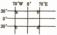 A.ac两地在东半球、bd两地在西半球 B.由a到b是由西半球到了东半球 C.ab两地在南半球、cd两地在北半球 D.由c到d是由东半球到了西半球 |