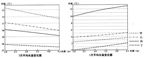 A.此洋流圈位于北半球 B.①洋流为赤道逆流 C.②洋流附近可能有沙漠和大型渔场分布 D.③④洋流对沿岸气候有增温、增湿的作用 3、填空题 1912年4月10日,泰坦尼克号驶离英国南安普敦港的海洋码头,它将追求采用创纪录的速度前往美国纽约,4月15日,在距离纽芬兰150千米处不幸误撞冰山而沉没。 4、单选题 下图是我国广州、重庆、武汉、北京四地水库不同季节的自然水温随深度的变化图,读图回答下列各题。 |