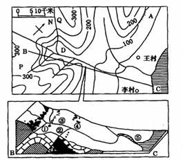 (2)沿着剖面线BC的地质剖面图中,①处形成浅谷的原因是                                  ;