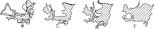 本题解析: 小题1:四幅图反映了洞庭湖的面积变化,洞庭湖的面积变化是由大到小,所以四图按照时间先后的排列顺序是丁、丙、乙、甲。 小题2:简述洞庭湖区发展水稻种植业的有利的自然条件亚热带季风气候,降水充沛,雨热同期;地势低平的沉积平原,土壤肥沃。 小题3:描述洞庭湖形态变化:面积变小,湖面变破碎,发生变化主要原因泥沙淤积、围湖造田。