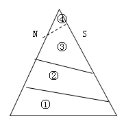 5、单选题 该图代表一座山地,图中①②③④代表不同的自然带,虚线表示雪线,N代表北坡,S代表南坡。据此回答问题。