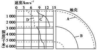 5、综合题 读地震波的传播速度与地球内部圈层的划分图,回答下列问题。