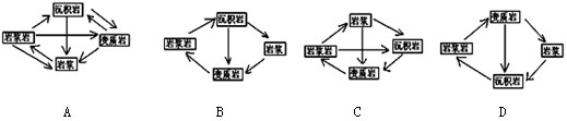 A.风化作用 B.侵蚀作用 C.沉积作用 D.搬运作用 4、单选题 读地壳物质循环简图,回答1—3题。 5、单选题 读下图,完成下列各题。 |