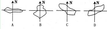 小题2:若该城市的工业布局是合理的,则该城市的风频图(表示风向及风力大小:离中心点越远,风力越大)可能是下列中的?