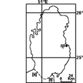 小题2:根据图中比例尺和轮廓可大约确定出该国东西为3×24 km,南北长大约为6×24km,故面积约为10368 km2。