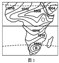 (3)图3所示月份,B地与图2中A地此时的气候特征主要有何异同?试分析其原因。