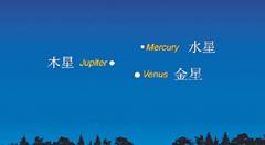 2、单选题 2013年5月27日,地球的三个近邻在日落后的西方低空中聚首,组成一个惹人注目的小三角形(如下图)。关于图中三大行星的叙述,正确的是( )