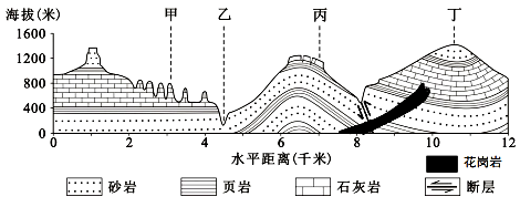 A.沉积-岩浆侵入-地壳抬升-外力侵蚀 B.岩浆喷出-沉积-外力侵蚀-地壳抬升 C.沉积-地壳运动-外力侵蚀-岩浆侵入 D.岩浆侵入-沉积-地壳抬升-外力侵蚀 |