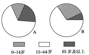 3、综合题  图中A、B表示两类不同经济发展水平国家的人口年龄构成,读图后回答下列问题。(10分)