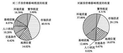 ①货源丰富?②地价较低?③环境优美?④交通便利 A.①② B.①③ C.②④ D.③④ 2、单选题  下图是上海市某区域住房价格各因素的影响权重示意图,读图完成1—2题。