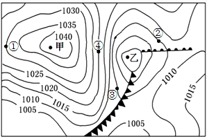 【小题1】图中甲、乙、丙、丁四条线附近能形成暖锋的是( )