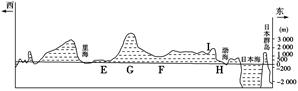 3、单选题 读沿40°N亚洲东西向地形剖面图,回答问题。