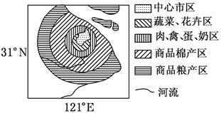 3、单选题 图为某市城郊农业分布模式图。读图,回答22~23题: