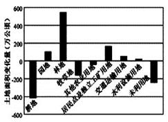 点评:本题难度较小,主要考查了我国土地资源利用的现状。解答该类题目的关键是掌握地理统计图的判读方法。