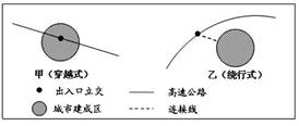 小题1:分析两种模式的高速公路对城市建成区的影响,可知