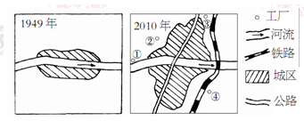 (1)2010年与1949年相比该城市地域形态明显不同,最主要的影响因素是