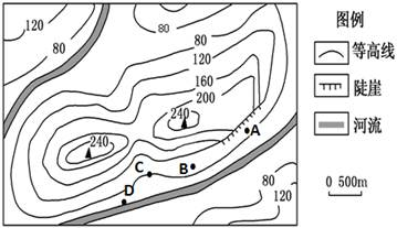 1.图中A、B、C、D四个地点,最合适在活动期间搭帐篷宿营的是2.对于该区域的地形判读,认识正确的是