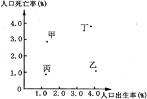 小题1:读图横坐标为出生率,纵坐标为死亡率,自然增长率=出生率-死亡率。