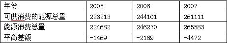 材料三:中国2005年至2007年综 合 能 源 平 衡 表(单位:万吨标准煤)