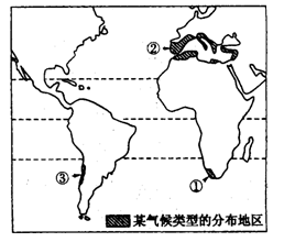3、单选题 读“世界上某种气候类型的局部分布地区示意图”,完成下列各题。